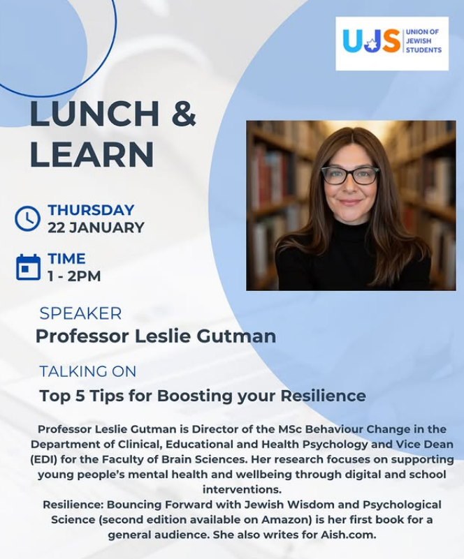 January 2026 Top 5 Tips for Boosting Your Resilience. Lunch and Learn: UCL Jewish Society (JSoC).